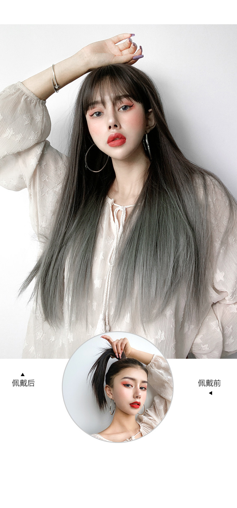 Парик, шлем, модная челка, прямые волосы, популярно в интернете, градиент