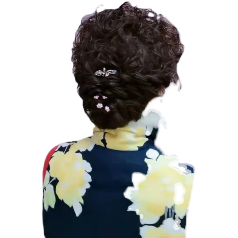 Парик, ретро кудрявая заколка для волос изготовленная из настоящих волос для пожилых людей, придает объем, для среднего возраста
