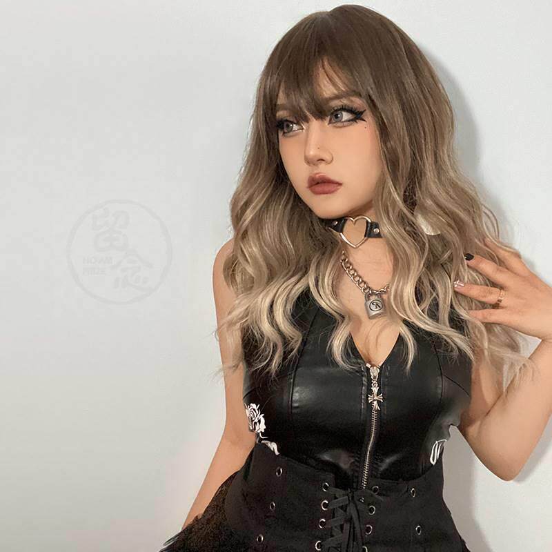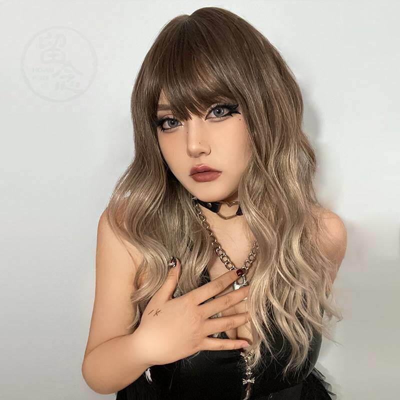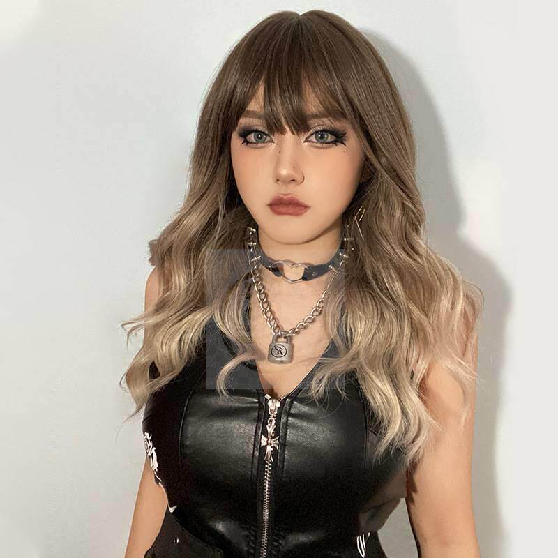 -Матт Шелковый розовый грип -градиент парик парик парик самка полная
