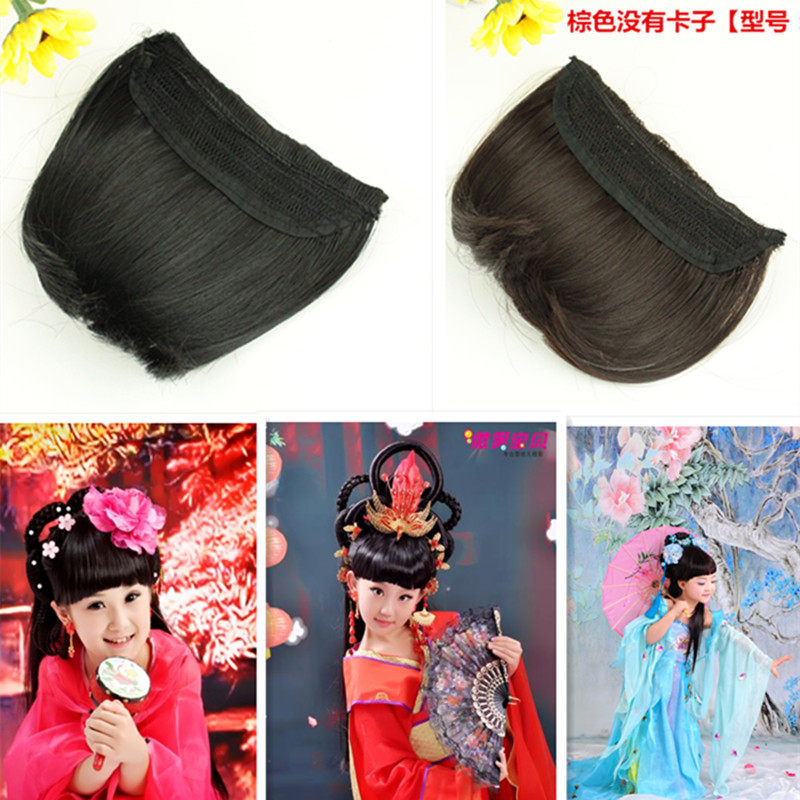 Синьи костюм студия челка кусок новый детский парик для выступлений патч высокотемпературный шелк бесследный невидимый Китайская Республика черный