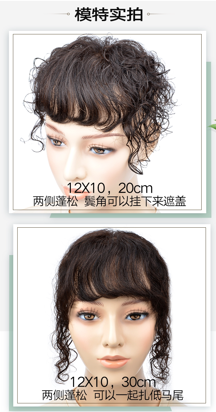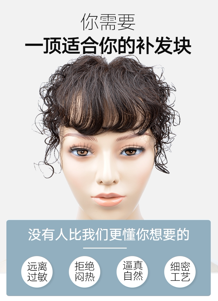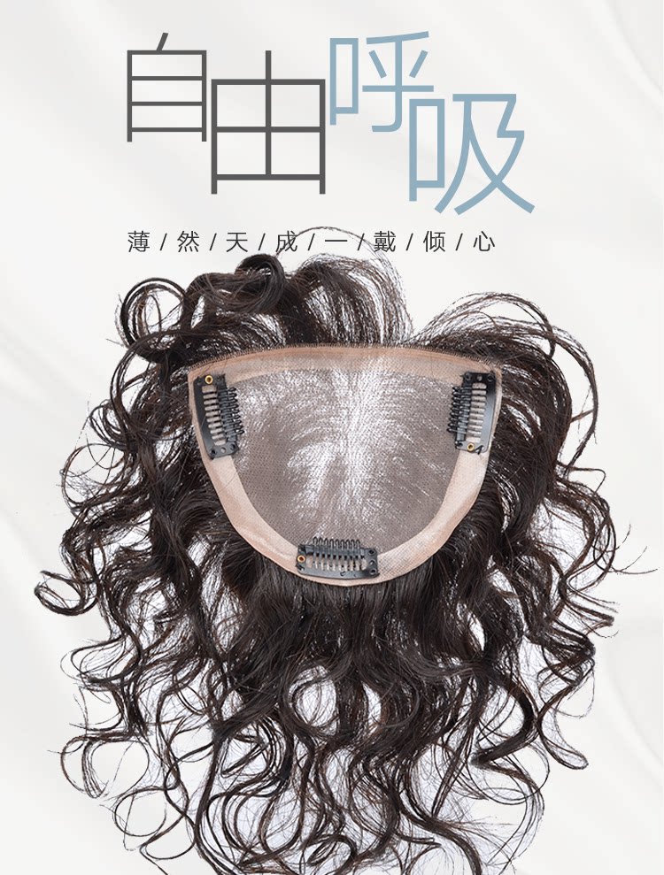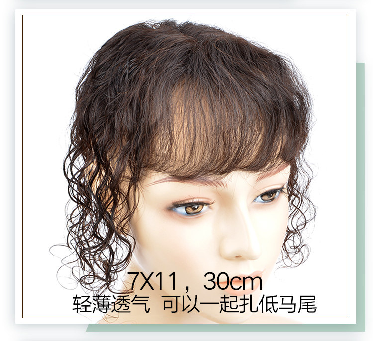 Парик, челка изготовленная из настоящих волос, кудрявые пряди волос на макушку изготовленные из настоящих волос, длина миди