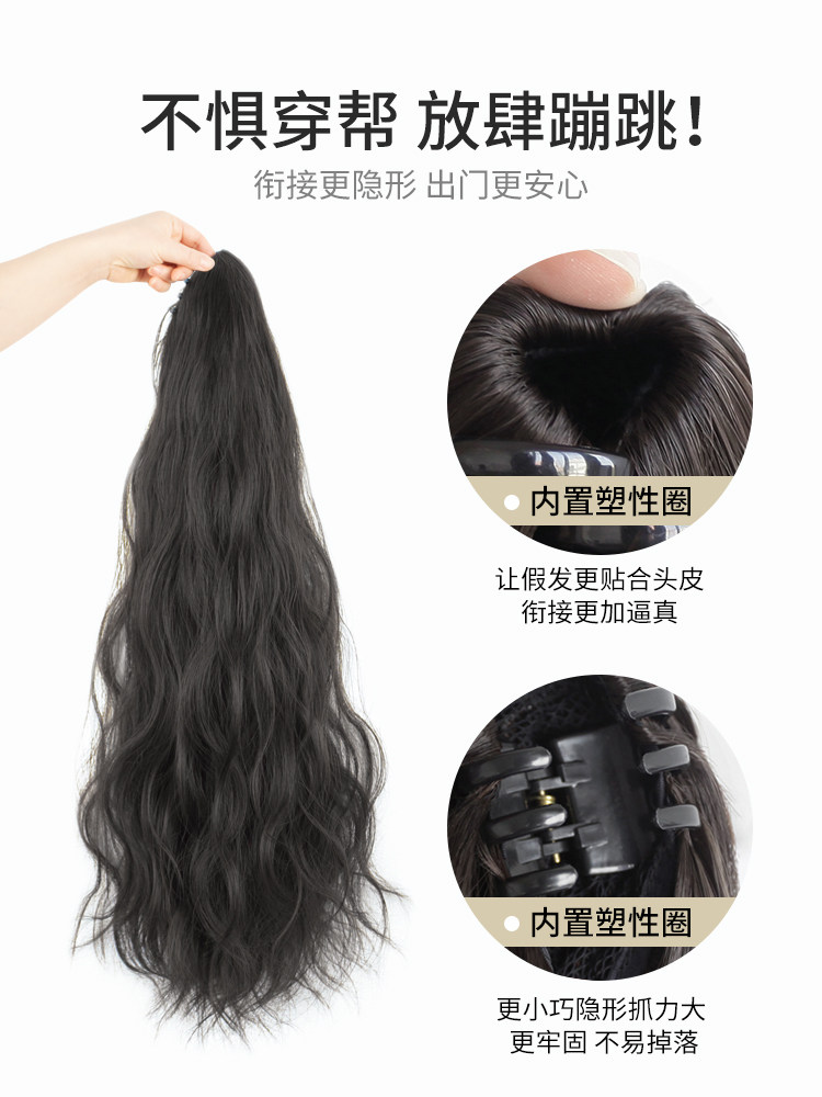 Хвостик, парик, заколка-крабик изготовленная из настоящих волос, кудрявый искусственный хвост с косичкой, волнообразный узор, придает объем, популярно в интернете