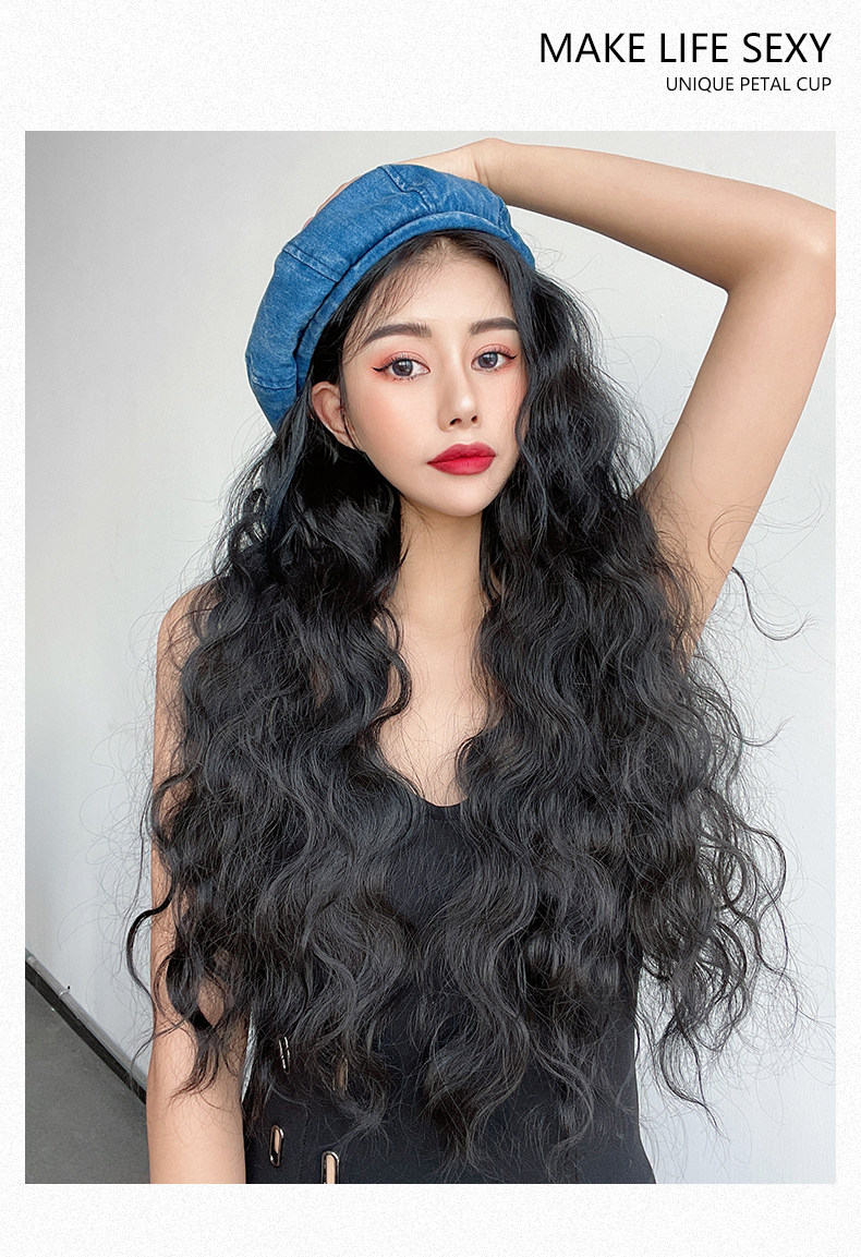 WIG женский u -образный кукуруза горячие вьющиеся волосы, длинные кудри с лапшой, без следа сосновой волосы, маленькие вьющиеся волосы