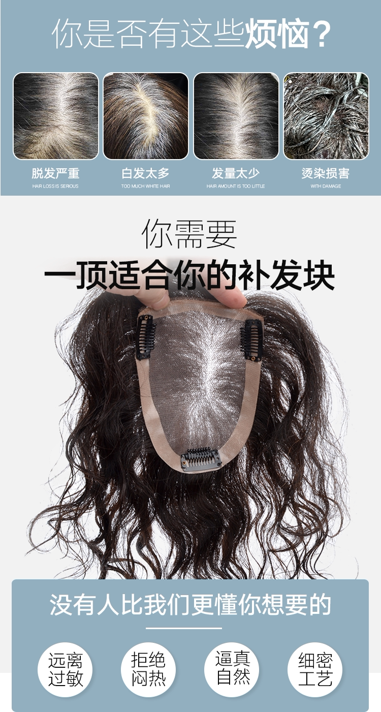Парик для пожилых людей на макушку подходит для седых волос, кудрявая холодная завивка, легкие и тонкие пряди волос изготовленные из настоящих волос, для среднего возраста, не оставляет следов, средней длины