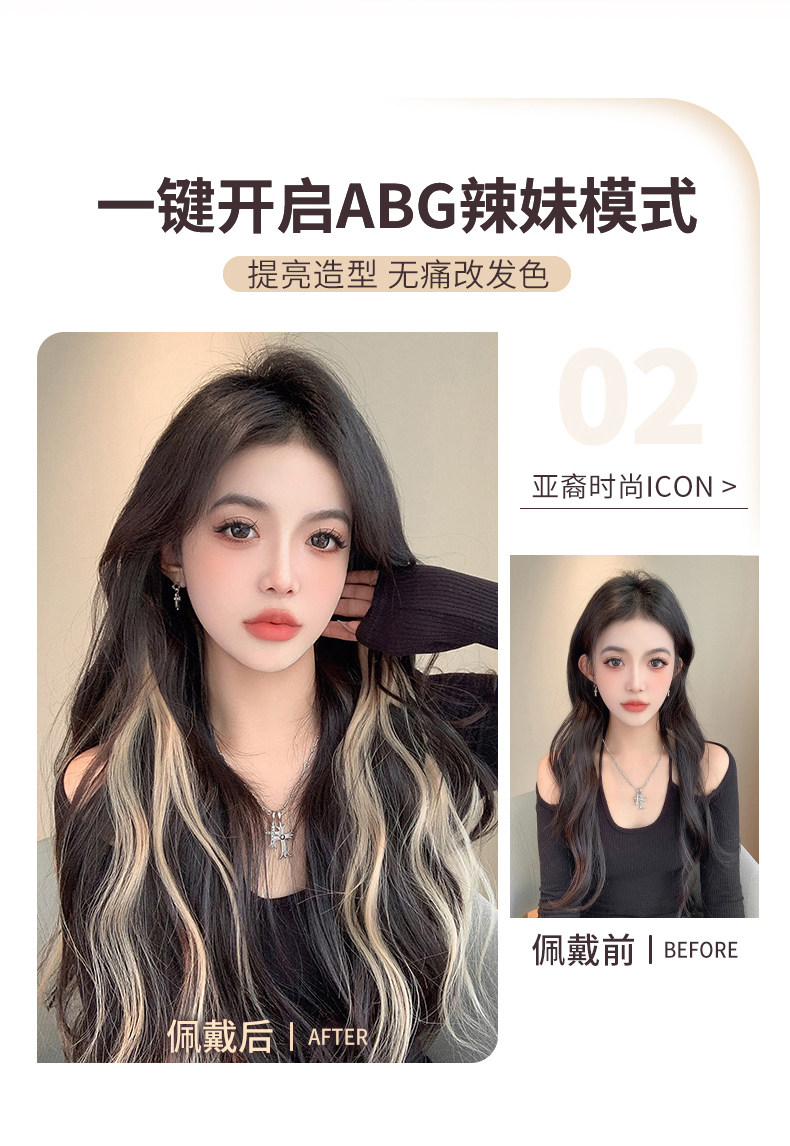 Цветные парики женские длинные волосы сладкие и прохладные таблетки для окрашивания ушей невидимы без трассиров