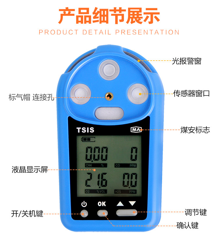CD3 Multi -Parameter Three -In -One Gas Measurement CD4 рудовая руда для портативного квадроцикла -детектора 5 тревога JCB