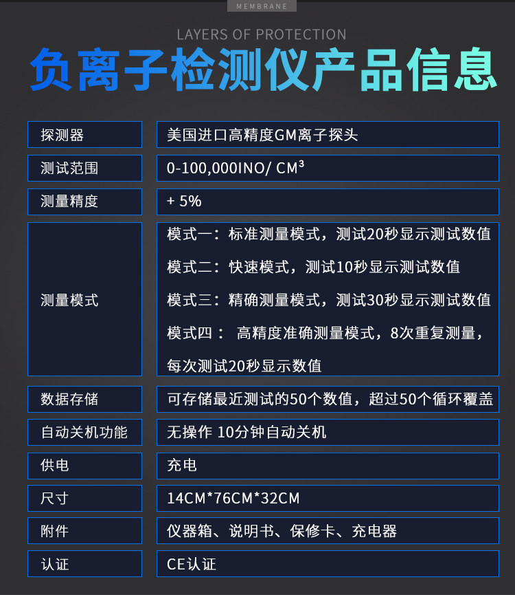 - Отрицательный ионный детектор с зарядным кабелем