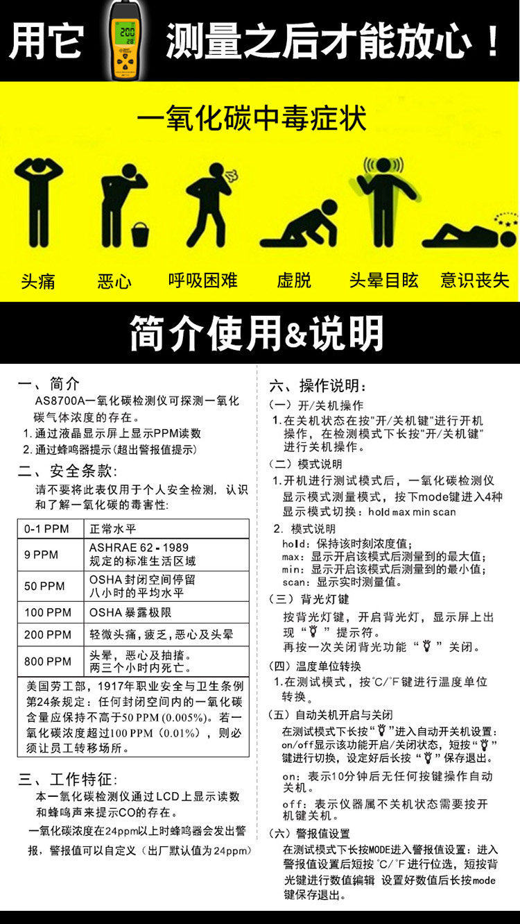 希玛 Углеродный газовый детектор моноксида портативная концентрация CO