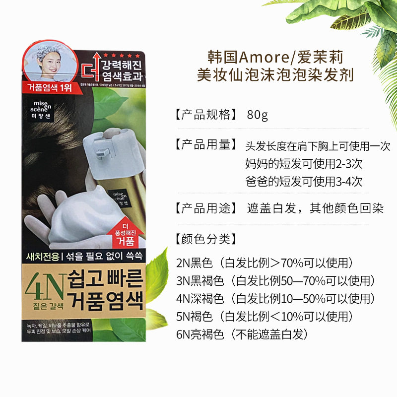 Amore 3n темно -коричневый 4n коричневый 2n крышка белые волосы 6n Черный чай цвет 5n темно -коричневый корейский краска для волос