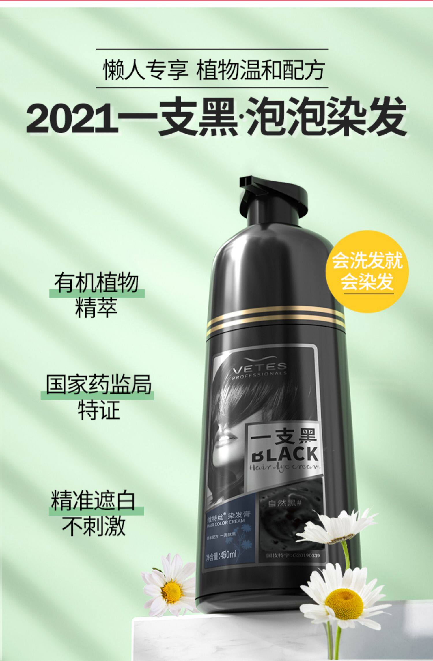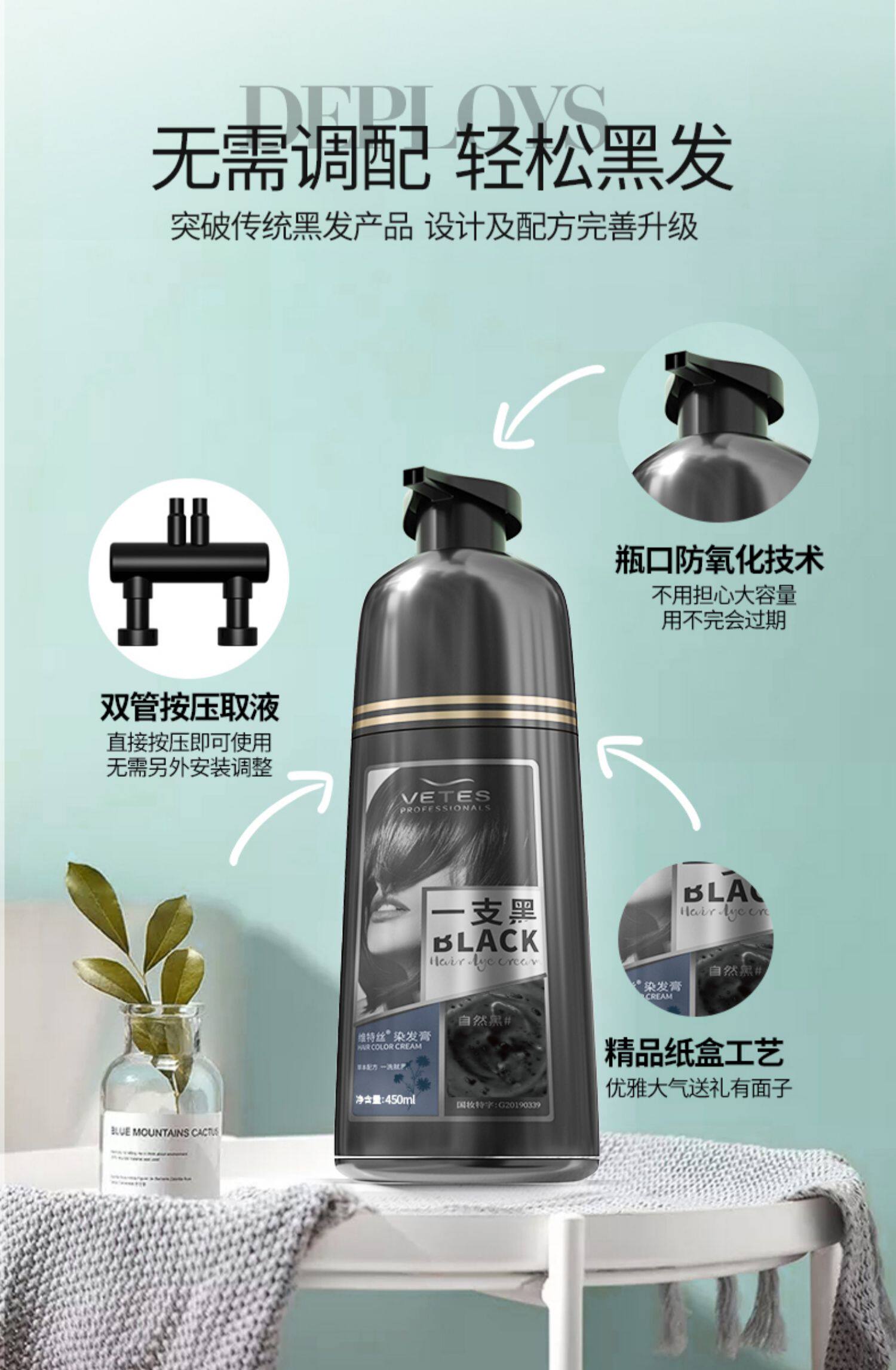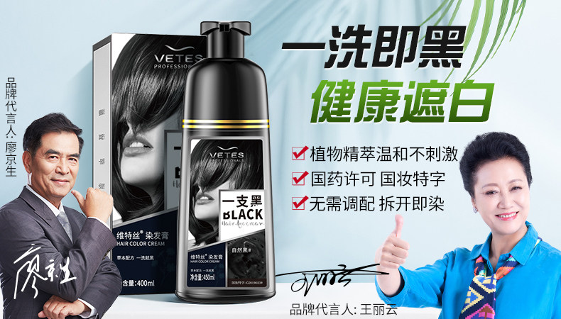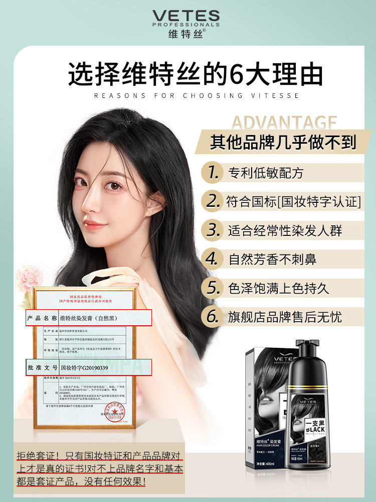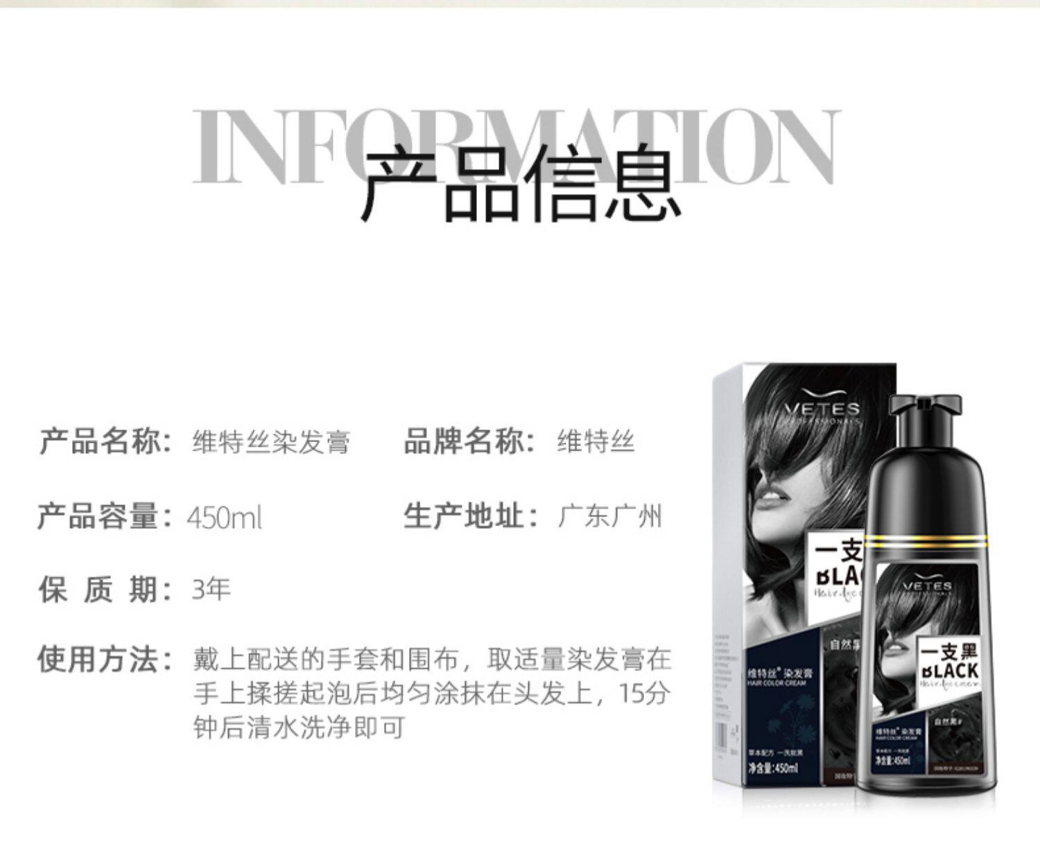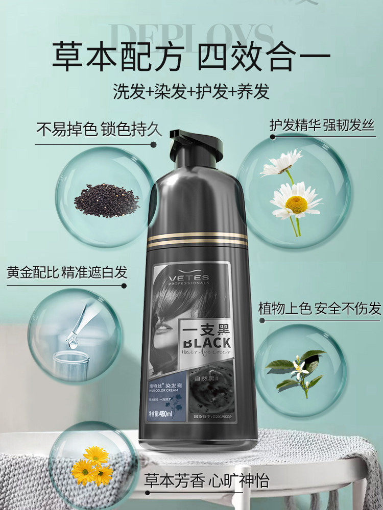 维特丝 Краска для волос, натуральный черный крем подходит для мужчин и женщин, не вызывает раздражения