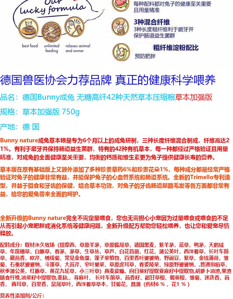 БЕСПЛАТНАЯ ДОСТАВКА Германия Импортированная кролика с высоким содержанием кролика в зерно кролика Натурально сжатое основное зерновое растение 1,5 кг