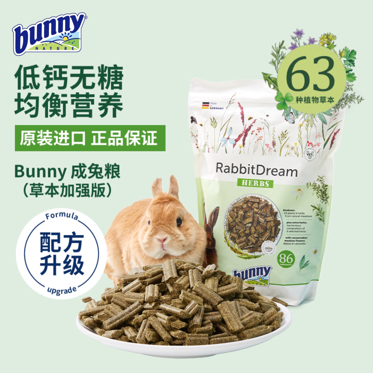Импортированный из Германии травяной корм Bunny Nature Bunny для взрослых кроликов, 1,5 кг, корм для кроликов с высоким содержанием клетчатки и без сахара