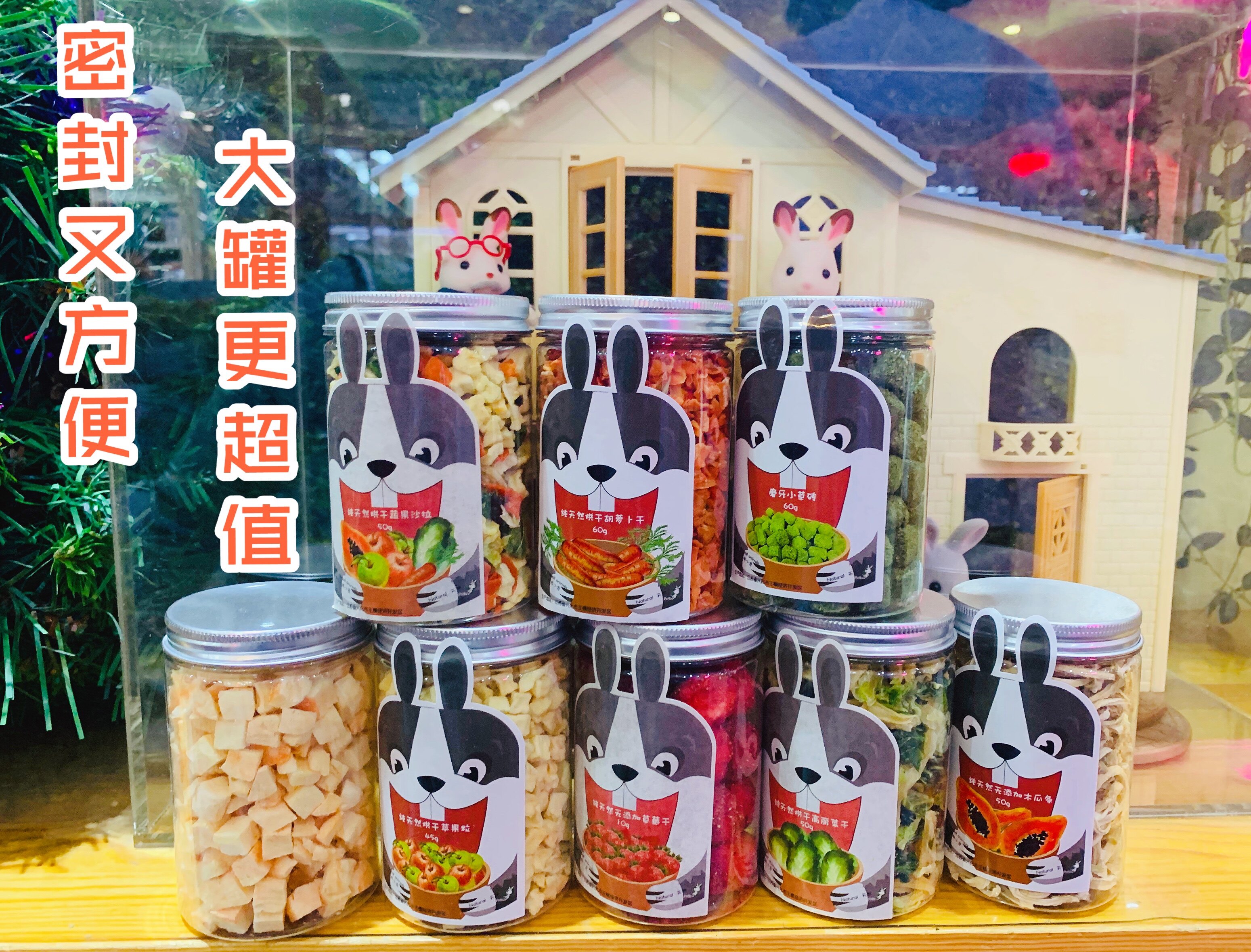 Закуски кролика Большие бутылки из фруктовых и фруктовых салатов сушка яблочная морковь, овощи, сухой пищи, хорошие партнерские тренировки Священные продукты