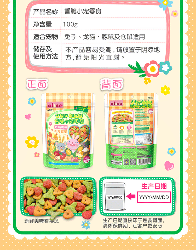 БЕСПЛАТНАЯ ДОСТАВКА АЛИСА ХРИПИ молярная закуска 100G кролика Тоторона Голландская свинина, тишильная, крыльца, мышь и моляры зубов закуски AE171