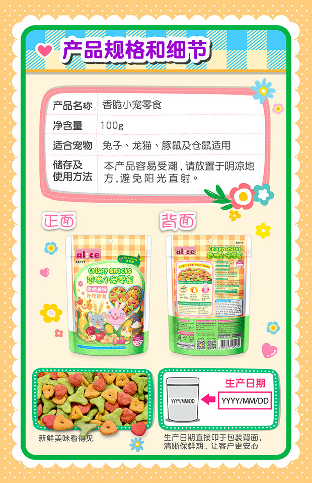 Алиса хрустящие закуски измельчают зерно 100G кроличье кролик -тоторона голландская свиная закуски AE171