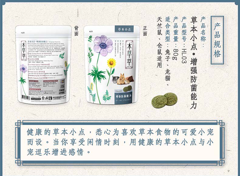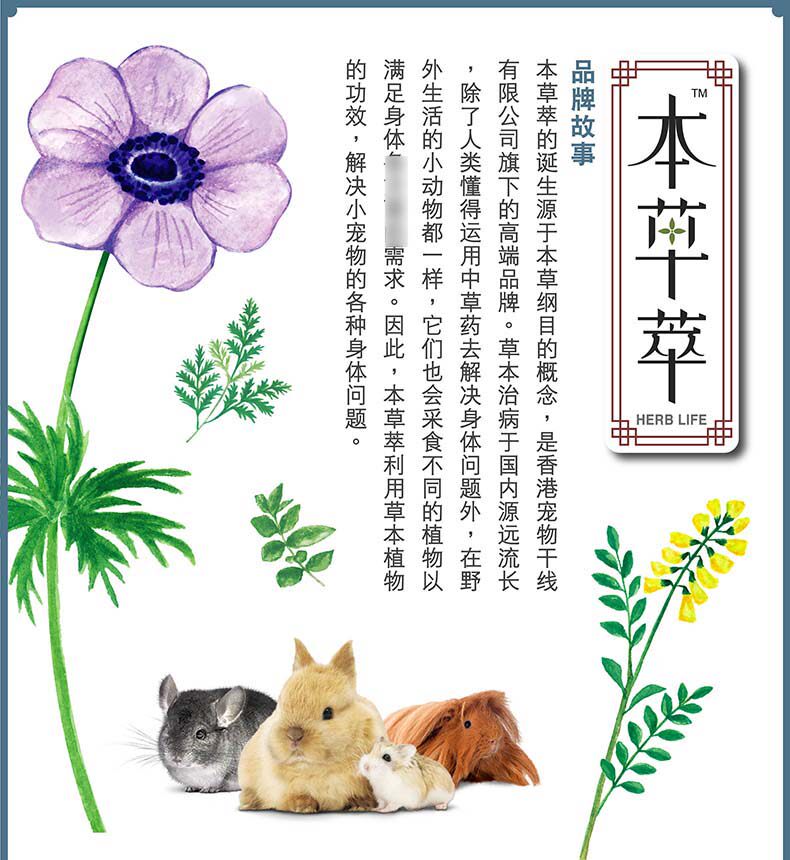 [Улучшенная анти -бактериальная способность] Materia Medica порождает небольшую точку 80G кроличье кроличье хомяки закуски сухой трава HL03