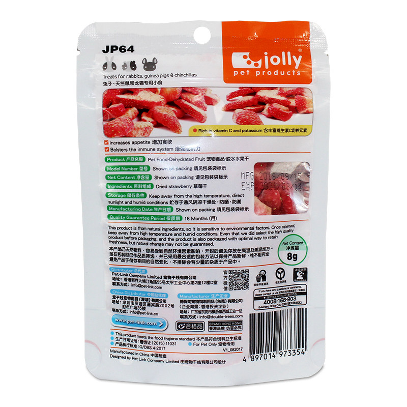 Jolly Zuli Crispy Strawberry Dry 8G кроличья тоторо -долкарная крыса висят мыши витамин С фруктовые закуски JP64