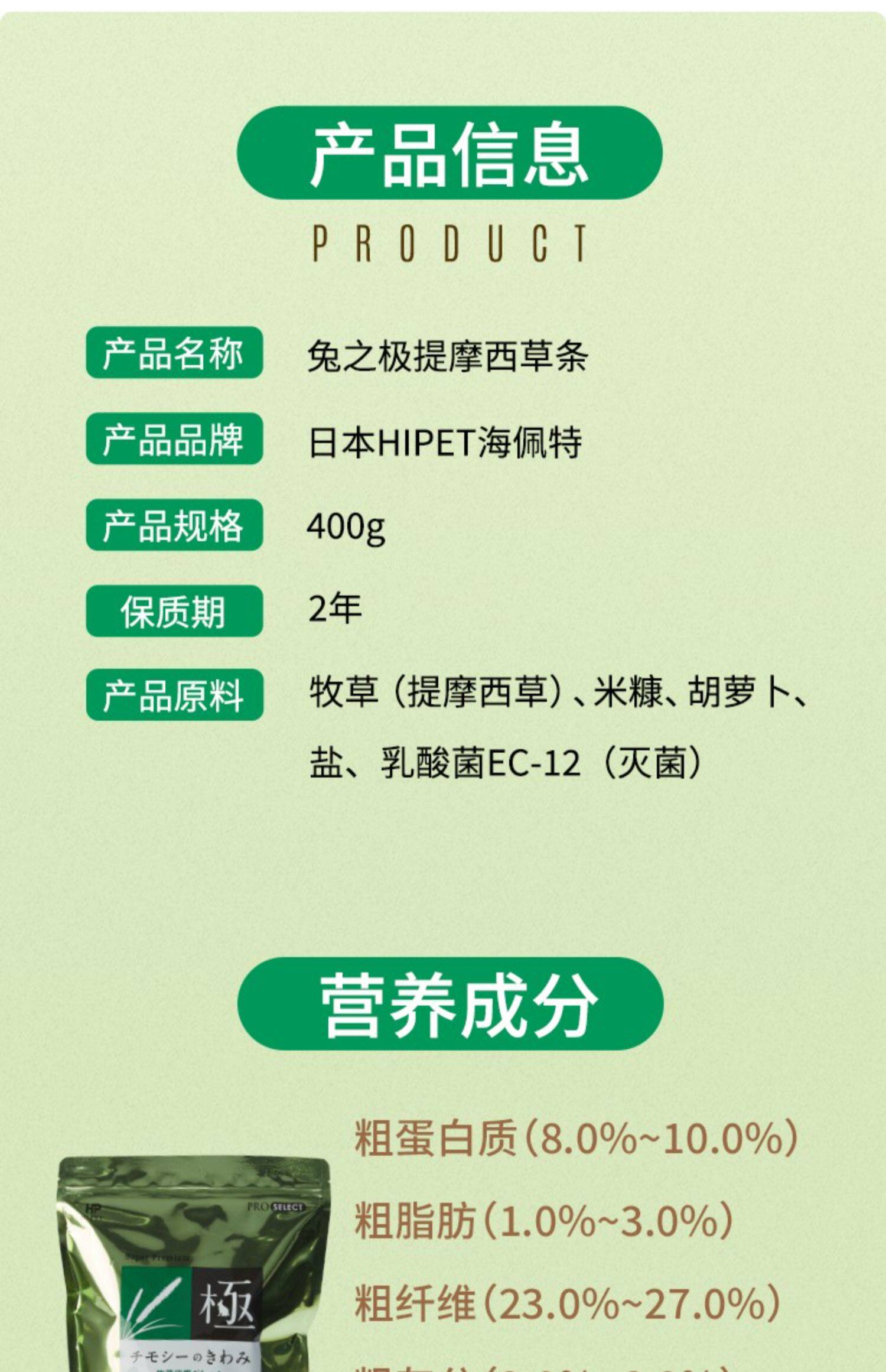 Япония Хипеет Хипетская кролик, чрезвычайно высокая клетчатка трава 400 г кролика Тоторо, Донарнар, Тиами Цао