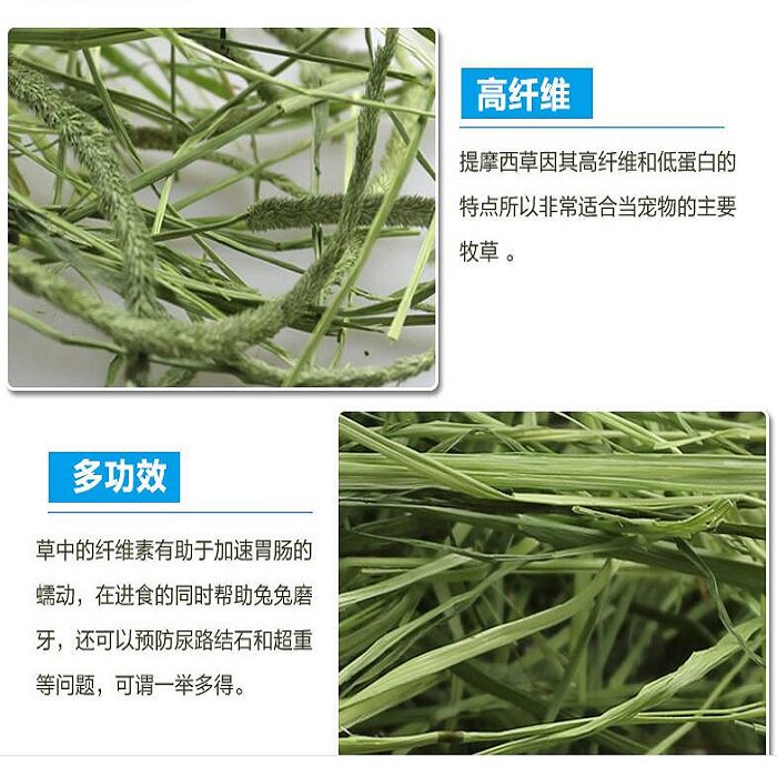 Тимоти (титазанская трава) принадлежит к фибробусу с высоким содержанием волокна, обеспечивая достаточное количество клетчатки для травоядных домашних животных,Содействовать желудочно -кишечной подвижности, кондиционирования пищеварения, эффективного сброса волос, чтобы предотвратить шарики, избегать запоров, мягкого стула и других симптомов; он оказывает определенное вспомогательное влияние на облегчение диареи, подходящих для всех кроли Еда и другие продукты травянистые домашние животные!