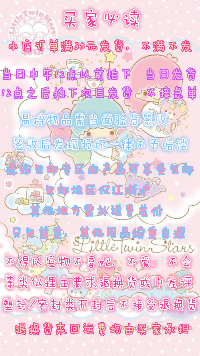 о доставке:Элемент по умолчанию превосходная скорость/Bai Shi Huitong, Живое тело по умолчанию Zhongtong Express.Не принимайте назначенного курьера.Если вам нужно отправить SF, пожалуйста, свяжитесь с Wangwang. Не отправляйте SF.Скорость экспресс -транспорта и доставки не контролируется небольшими магазинами. Если вы обнаружите, что логистика медленная или не обновляется, вы можете связаться с нами. Мы связываемся с компанией Express как можно скорее.Я надеюсь, что все понимают.