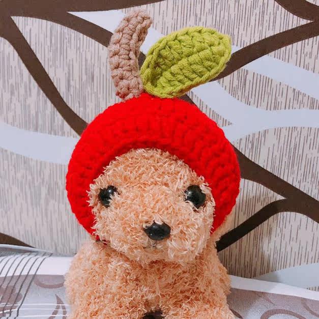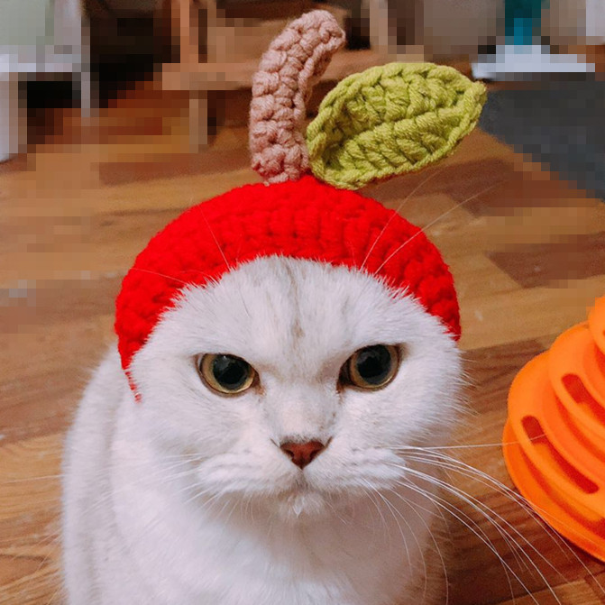 Шляпа мультфильма ручной работы милая кошка, кошачья собака красное яблоко и перчатки.