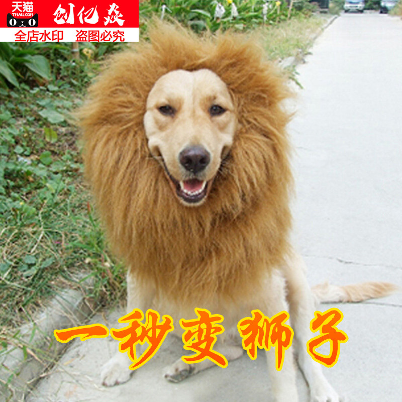 Голова домашнего животного Lion Смешное шлем становится головой собаки, голова льва, золотые волосы не могут бросить фальшивый король льва.