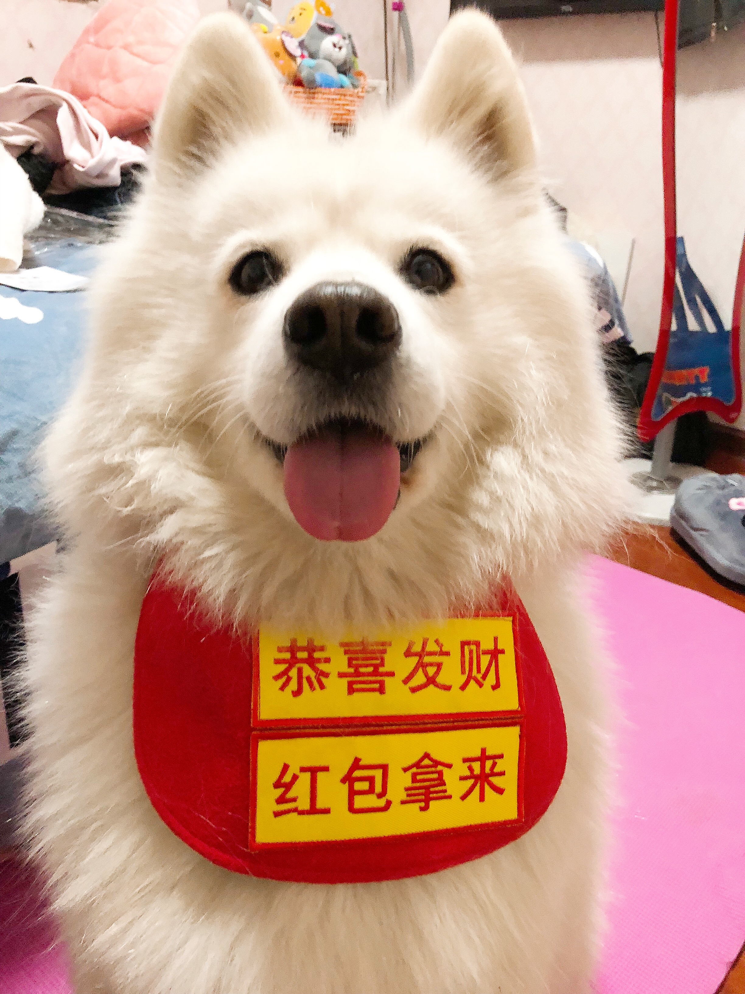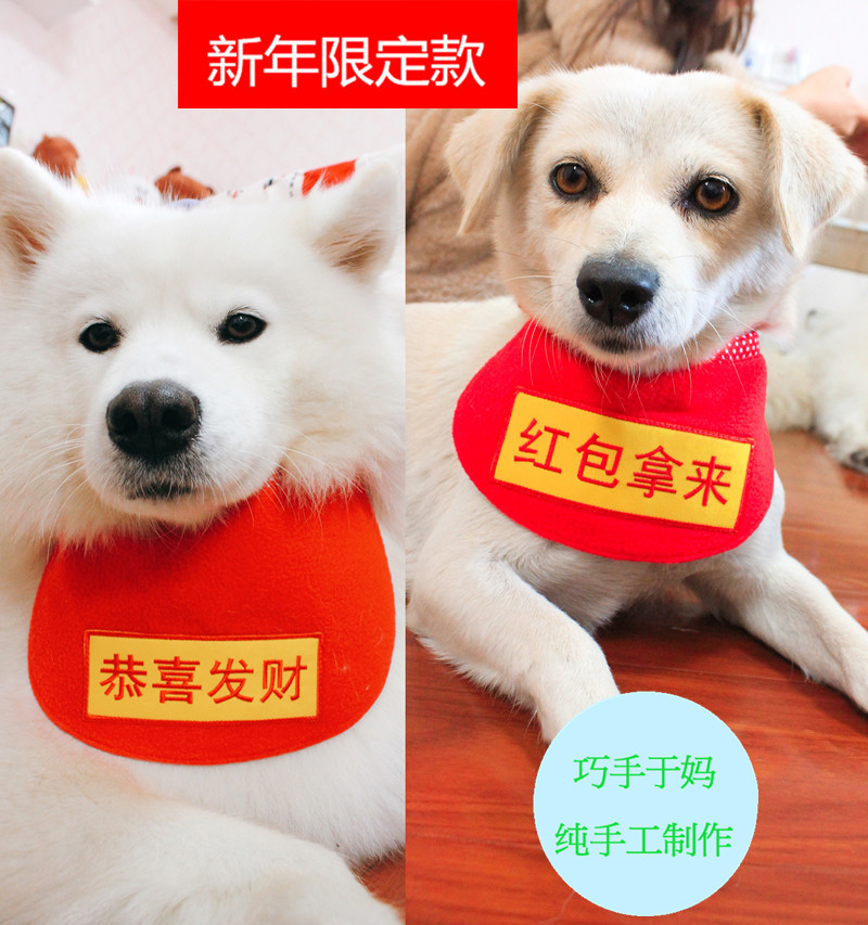 Qiaojian yu мама/поздравляю Fa Cai-New Year Pet Dog Dog Dog Dog Water Scorf золотой ретривер Самоя Аляска