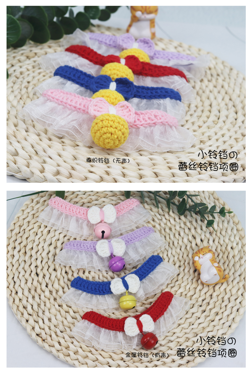 Плетеный шарф ручной работы, бесшумный чокер, колокольчик, нагрудник, регулируемый слюнявчик, домашний питомец, кот