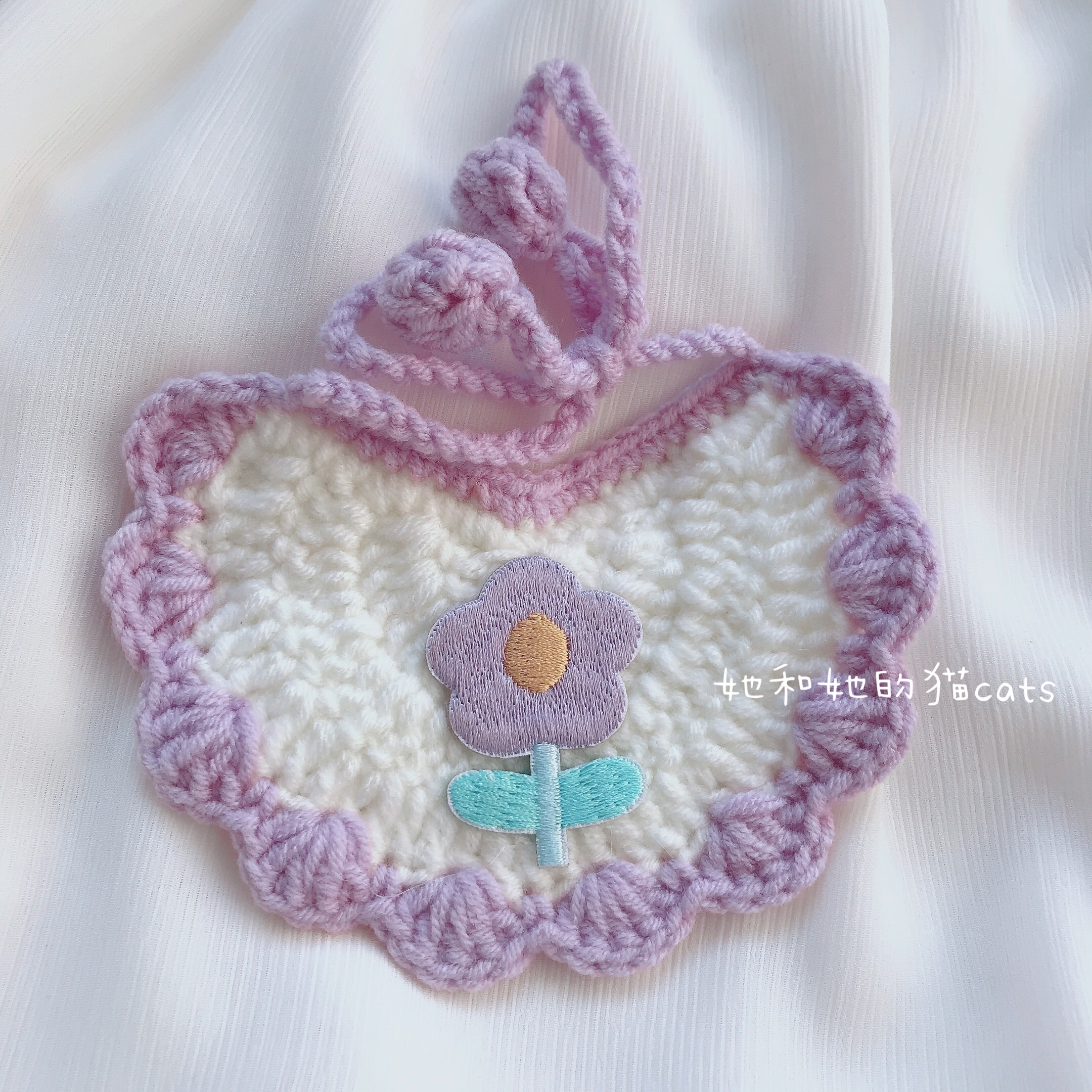 「她和她的猫cats」 Сиреневый слюнявчик ручной работы, шарф, аксессуар