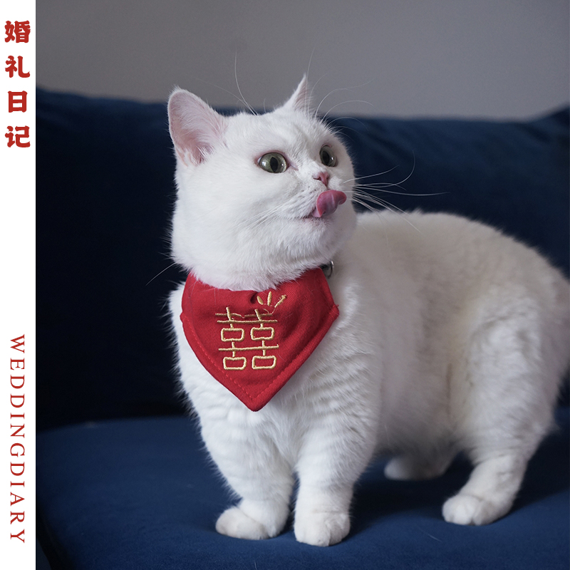 Свадебный дневник, вышитый шарф, полотенце из слюны домашних животных, красный бархатный шарф для кошек и собак, свадебное фото.