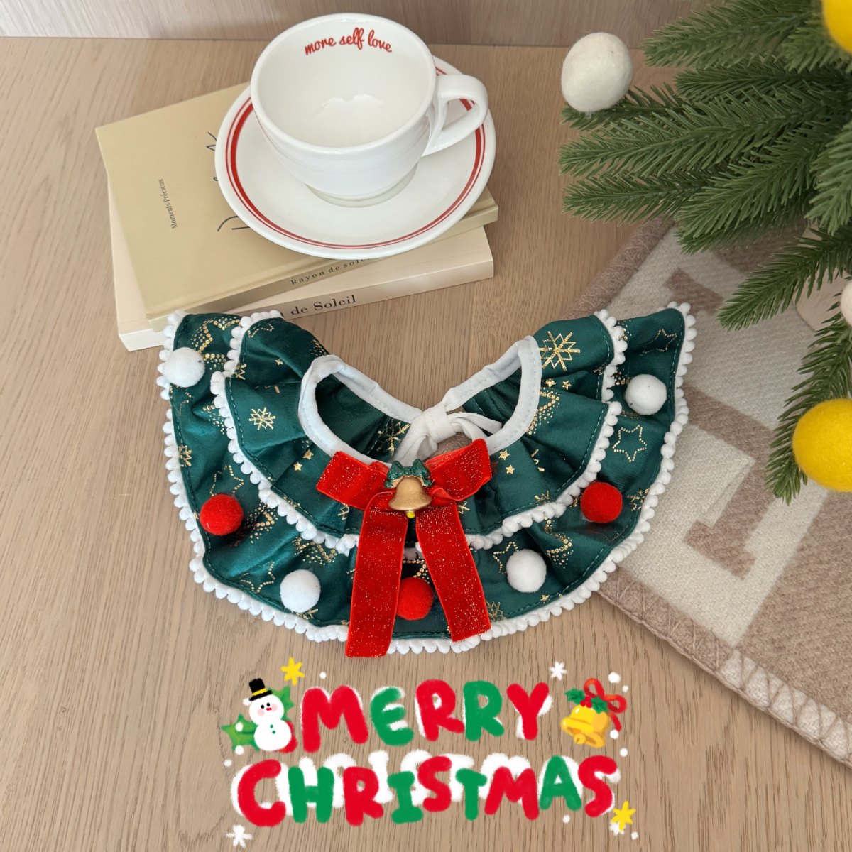 Рождественский двухэтажный нагрудник, колокольчик, шарф, домашний питомец, кот, со снежинками