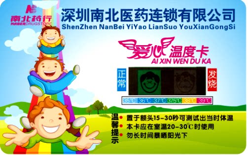 карта температуры тела   изысканный внешний вид и новые формы, вы можете поместить ее с вашей банковской картой с собой, легко переносить и собирать. Определенный размер и контент печати можно превратить в различные стили и спецификации в соответствии с предпочтениями клиента:  держите его рукой на лбу в течение 15-30 секунд, чтобы показать плачущее или смайливое лицо, может непосредственно определить, что температура нормальная или лихорадка.  немедленно обратитесь за медицинской помощью