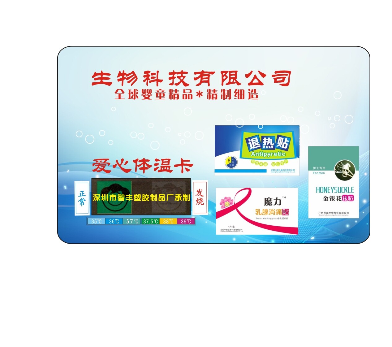Shenzhen Zhifeng Пластиковые изделияКомпания с ограниченной ответственностью.Профессиональная производственная система для различных пластиковых продуктов рекламных подарков, различных прозрачных пластиковых продуктов упаковочная коробка продукт мягкого клее  Членская карта, VIP -карта, температурная карта, запатентованная карта утенок, больничная карта, тестовая бумажная карта, вентилятор рекламы, тестовая карта температуры тела, тестовая карта измерения температуры воды, эмоциональная карта, эмоциональная карта  Love Card  подушка для еды, рекламная салфетка, мышиная прокладка, рекламные ручки, чашка с обогреваемой водой, бутылка с горячей водой  папка пластикового пакета, серия упаковки канцелярских товаров, косметика, подарки, игрушки, электронные продукты.После многих лет усилий и опыта на фабрике, на прекрасной автономной фабрике поддержки Шэньчжэнь Гуанлана, он специализируется на различных рекламных подарках. Это предприятие, интегрирующее развитие, дизайн, производство и продажи.