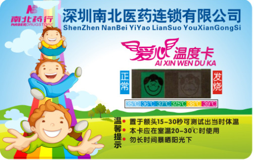 карта температуры тела   изысканный внешний вид и новые формы, вы можете поместить ее с вашей банковской картой с собой, легко переносить и собирать. Определенный размер и контент печати можно превратить в различные стили и спецификации в соответствии с предпочтениями клиента:  держите его рукой на лбу в течение 15-30 секунд, чтобы показать плачущее или смайливое лицо, может непосредственно определить, что температура нормальная или лихорадка.  немедленно обратитесь за медицинской помощью