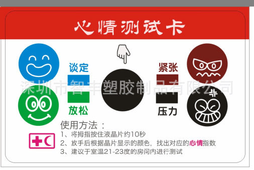 Shenzhen Zhifeng Plastic Products Co., Ltd. -это высокотехнологичное предприятие, посвященное исследованиям и разработкам, производству и использованию специальных функциональных материалов. Органическое слияние пластиковых ремесел.В области ремесленной печати используйте изменение цвета мудрости, чтобы отметить различные изменения условий окружающей среды, чтобы различные цвета могли показать их особое значение, такие как изменения температуры тела, изменения в настроении, изменения эмоции, изменения в давлении и изменения в Температура ... ... ожидая более десяти лет, компания предоставила десятки тысяч отечественных и иностранных компаний с высоким качественным жидкокристаллическим цветом термометров, цветных карт, цветовых пластиковых продуктов и других новых подарочных настроений, Любовь эмоциональная испытательная карта применима к мировой технологии измерения температуры, тока температура отображается с помощью изменений цвета. Измерение точное, показания очевидно, интуитивно и удобно. Как правило, температура может быть измерена примерно за 15 секунд. Повторно используется. Станьте продуктом, производимым в соответствии с креативностью клиентов, или печатайте рекламный контент компаний или продуктов клиентов на карте, в качестве рекламного рекламного подарка, чтобы расширить популярность предприятий и его бренда.