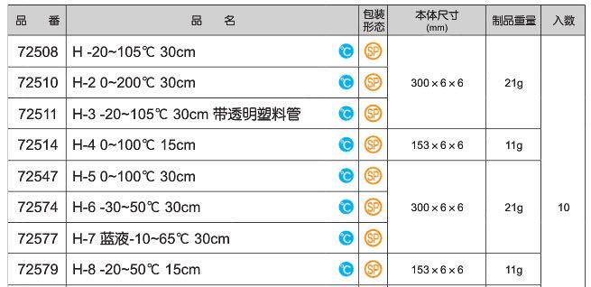 | Цвет: | 72510/0 ~ 200 ℃ 30 см 30 см., 72579/-20 ~ 50 ℃ 15 см., 72547/0 ~ 100 ℃ 30 см 30 см., 72574/ -30 ~ 50 ℃ 30 см., 72514/0 ~ 100 ℃ 15 см., 72511/-20 ~ 105 ℃ 30 см с пластиковой трубкой, 72508/0 ~ 105 ℃ 30 см 30 см., 72577/ синяя жидкость -10 ~ 65 ℃ 30 см 30 см., 72749/алкоголь 0 ~ 100 ℃ 30 см. |
