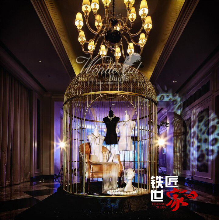 Железная птичья клетка Большая золотая супер -присаженная клетка для птиц на открытом воздухе.