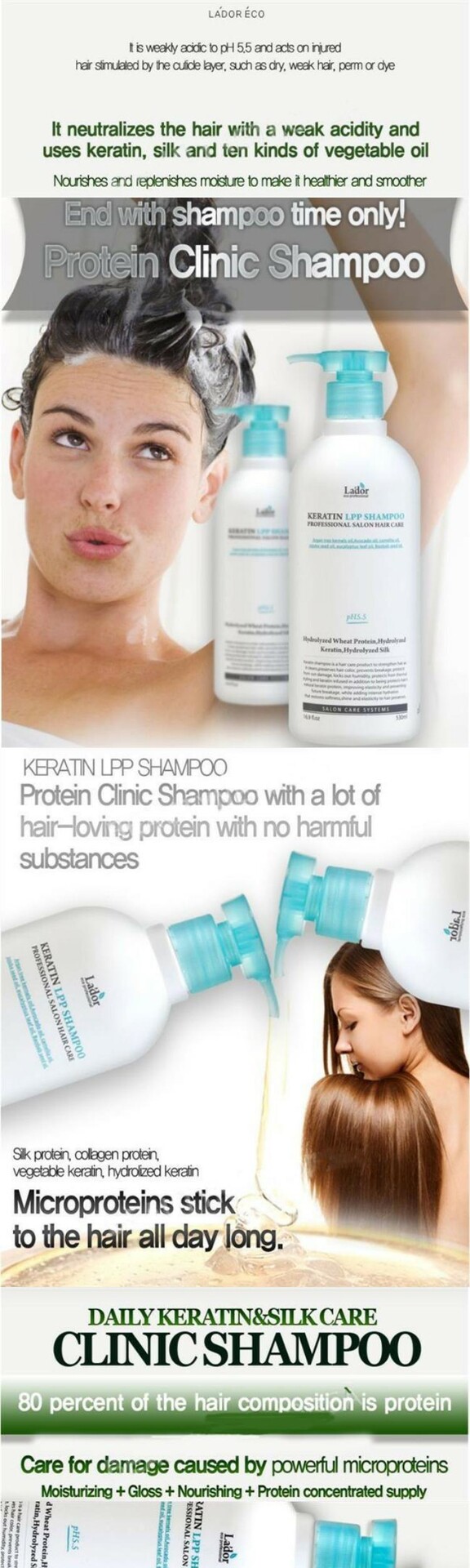 530 мл Lador Keratin LPP -шампунь для лечения белком уход за волосами