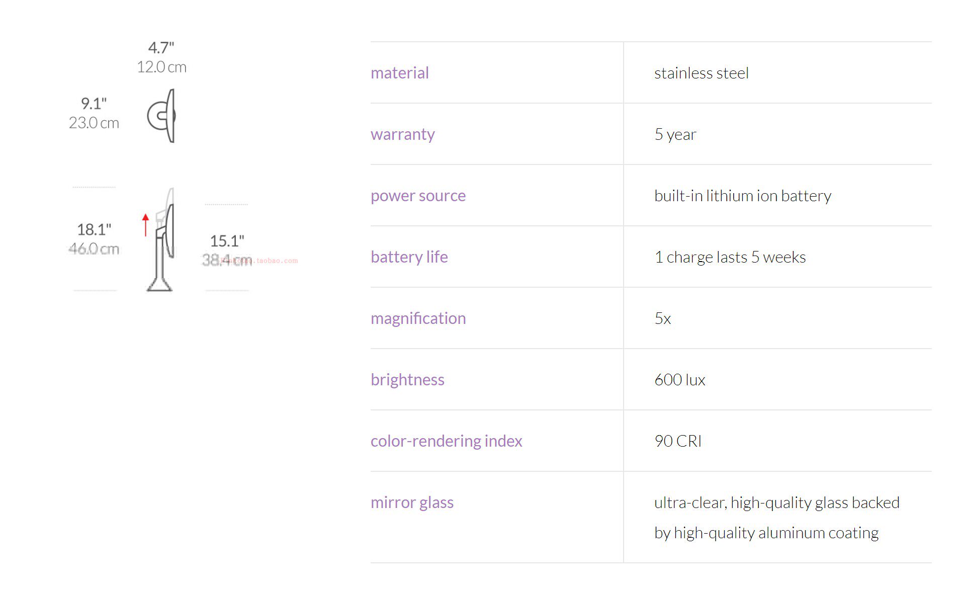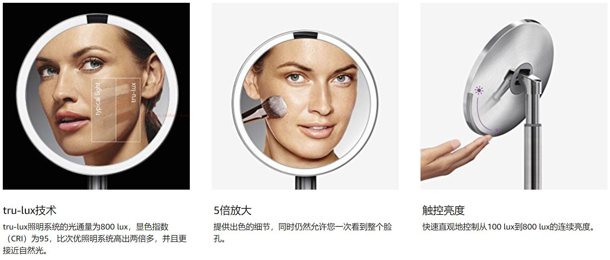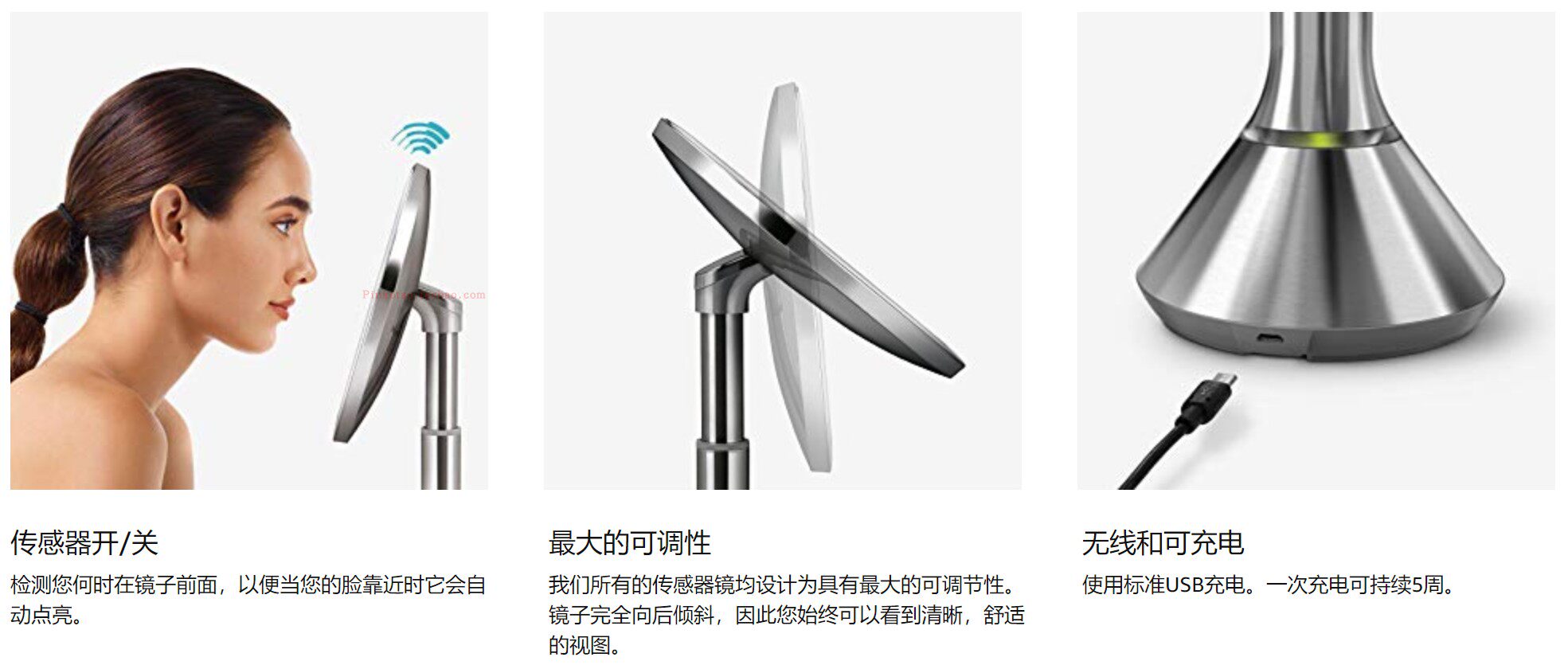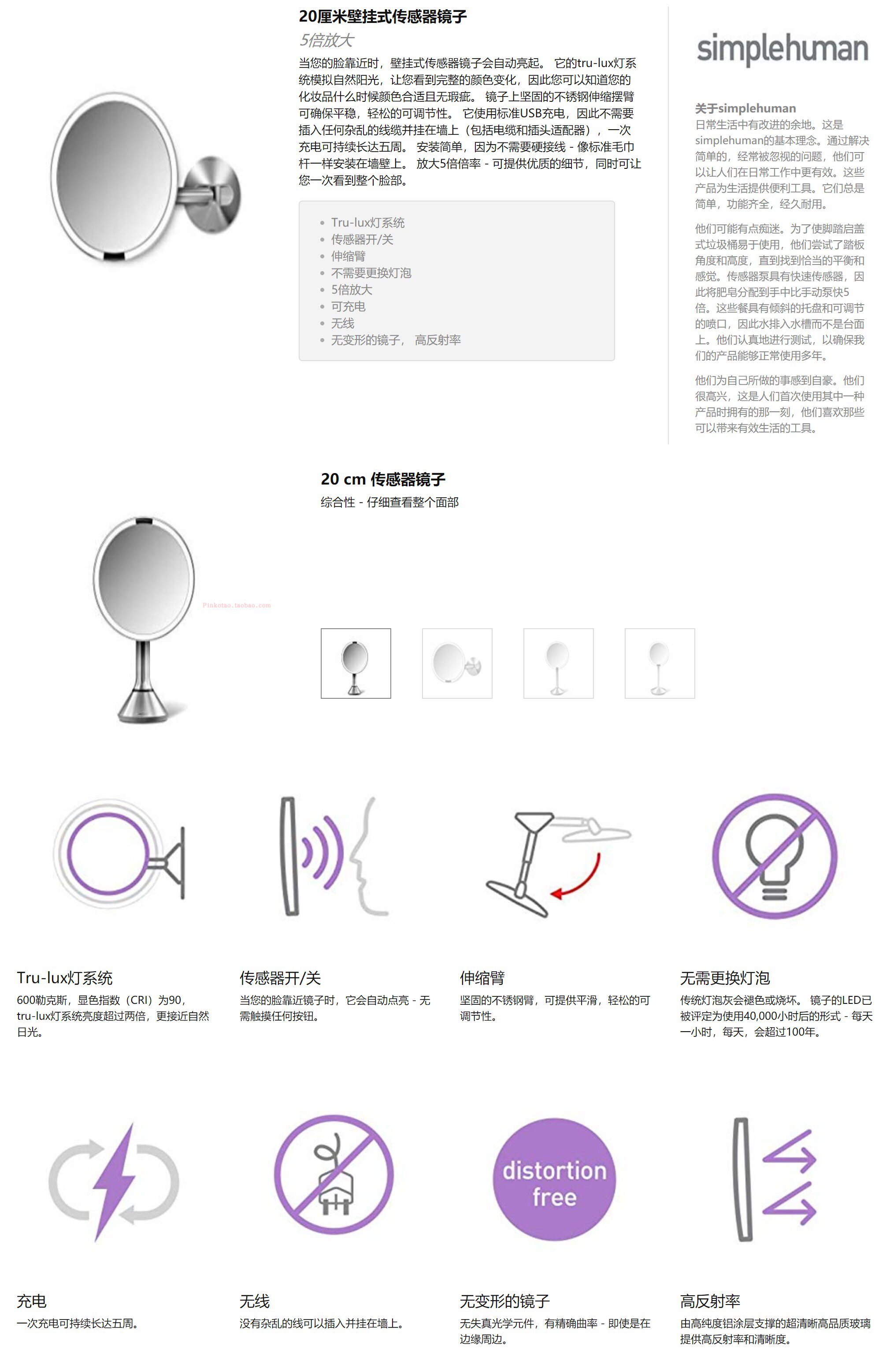 Simplehuman 8-дюймовая интеллектуальная индукция зеркала зеркала светового управления увеличивает детали.