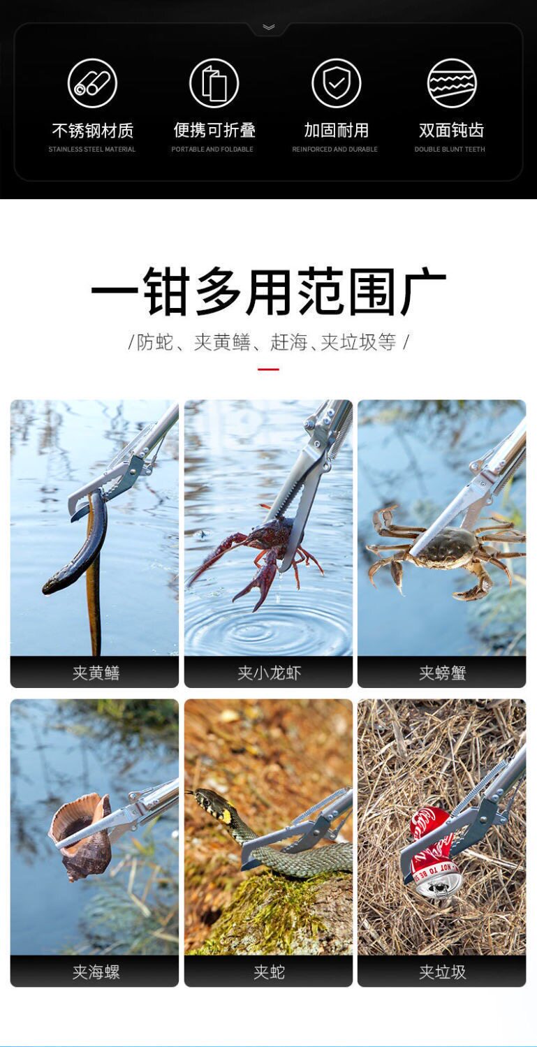 Взрывные щипцы для змеиных крючков, желтый зажим для крикета, хватайте лоха и удлиненные плоски сома, складывающие толстые инструменты для заноса, артефакт рыбного крючка