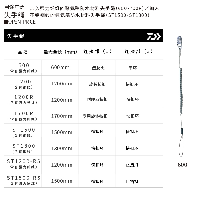 Daiwa/Dayi Watto Телескопическая веревка 600 Стальная проволока/мощные волокнистые рыболовные принадлежности аксессуары 60 см.