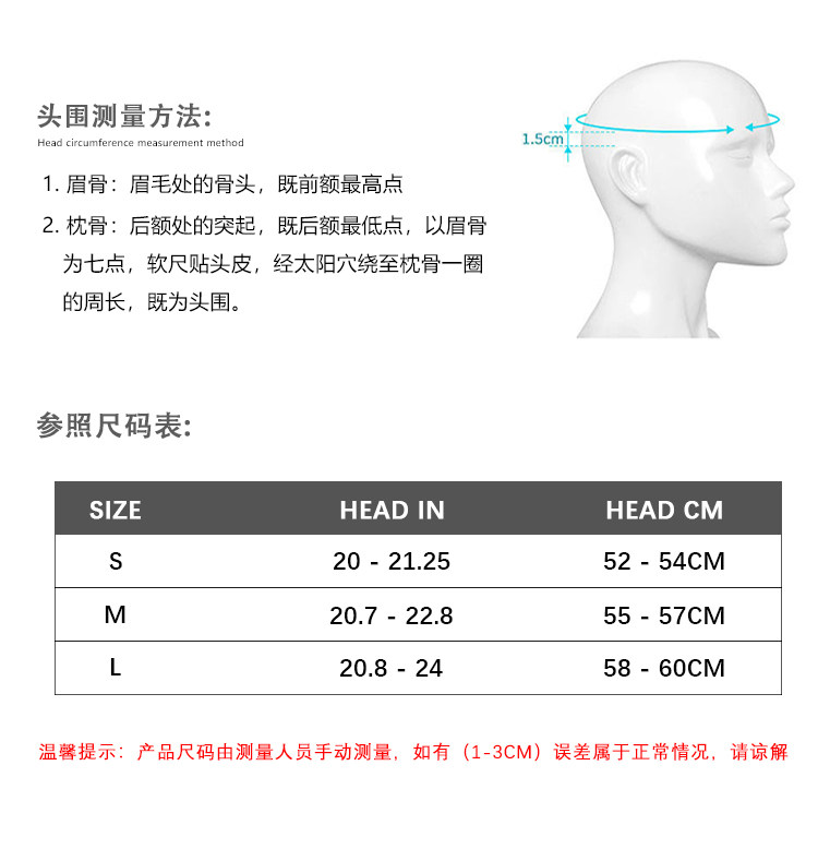 | Окружность головы: | 52cm, 53cm, 54cm, 55cm, 56cm, 57cm, 58cm, 59cm, 60cm |
