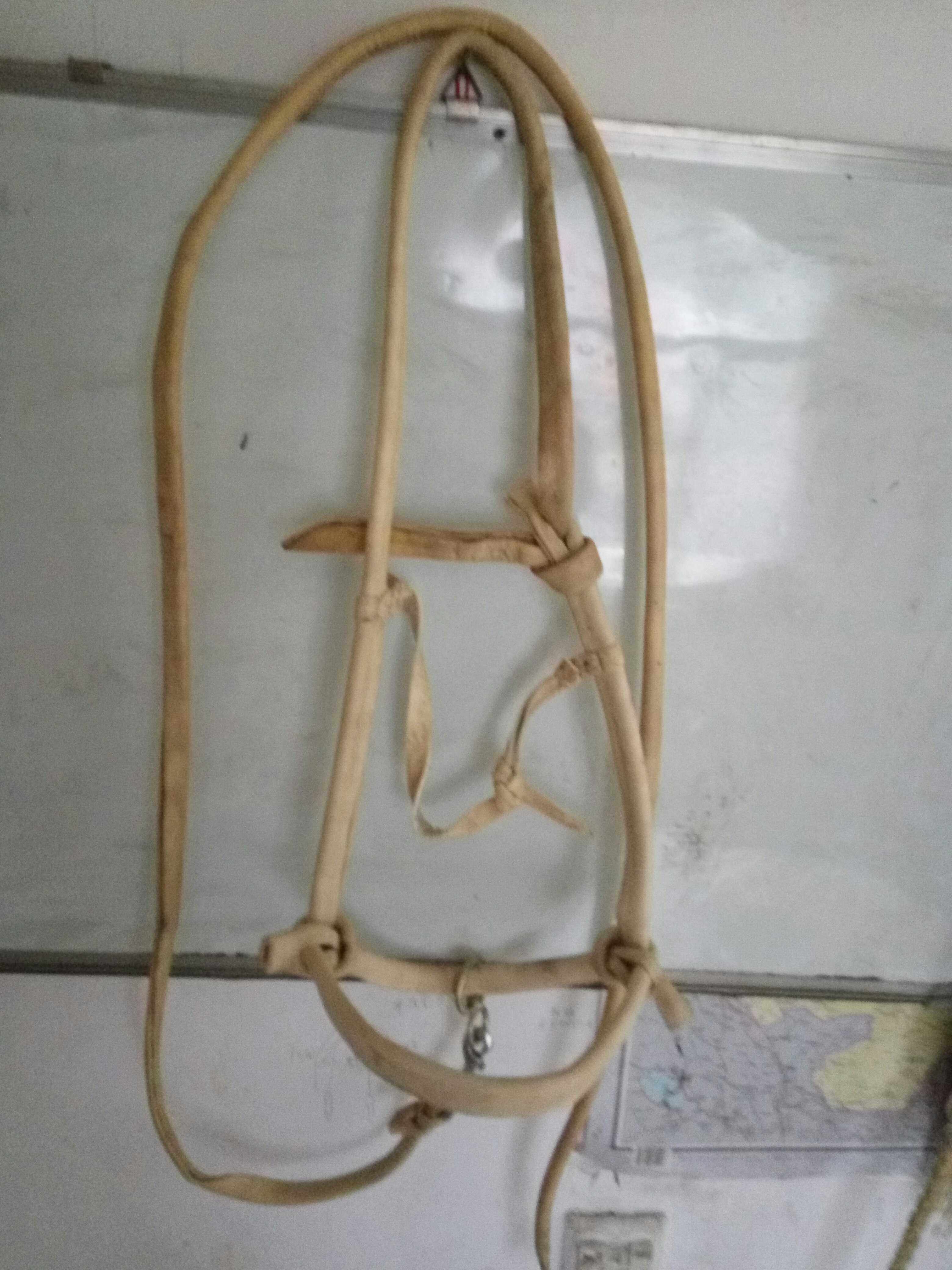 Лидер лошадей - сильный, долговечный, чистый заголовок коровьего коровьего цвета, создавая поводья конных продуктов, старые модели, особенно практические лошади