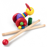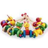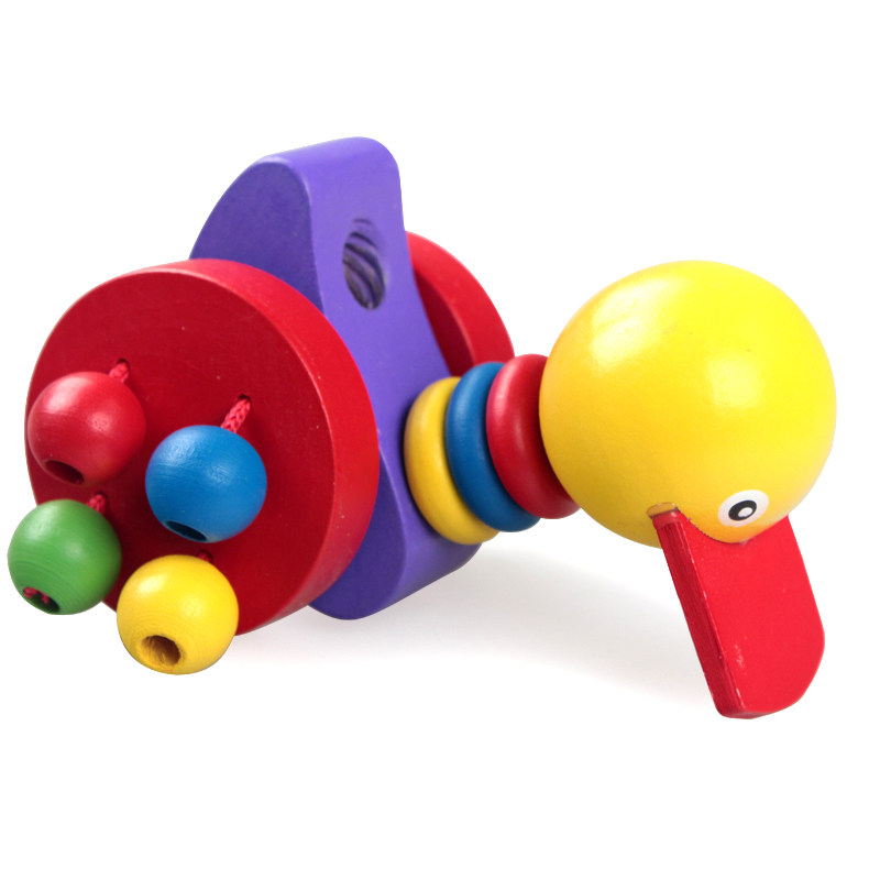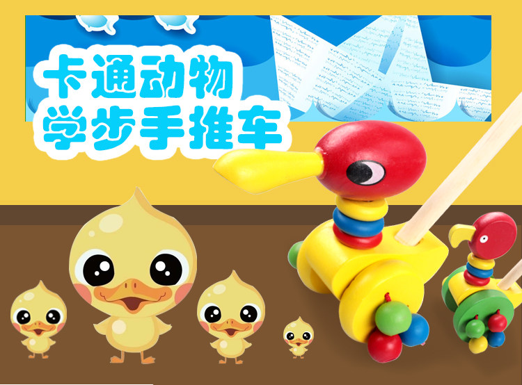Деревянная мультяшная детская коляска для раннего возраста с животными, игрушечная машина, игра на толкание пальцев, утка, 3 лет