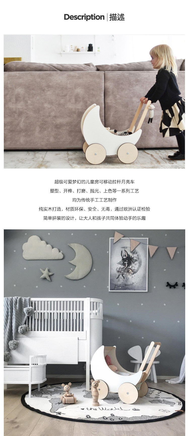 Простая коляска, белая игрушка из натурального дерева, детская система хранения, ходунки, скандинавский стиль