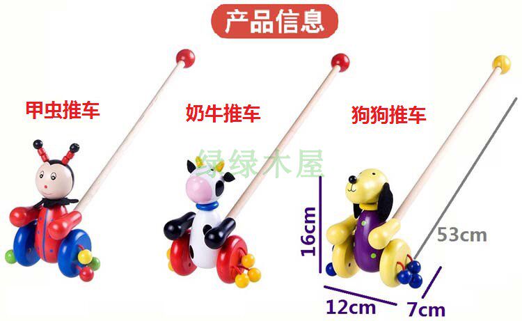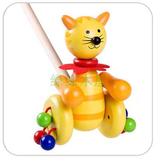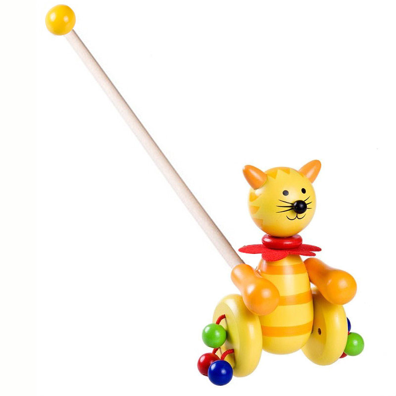 Мультяшная деревянная игра на толкание пальцев с животными, детские ходунки, коляска для мальчиков и девочек, игрушка, котенок, учит ходить