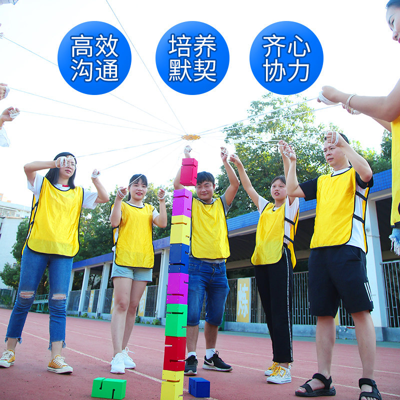 Работайте вместе, чтобы построить строительную башню, мероприятия по развитию команды на свежем воздухе, игры по построению команды, реквизит, забавное спортивное оборудование.