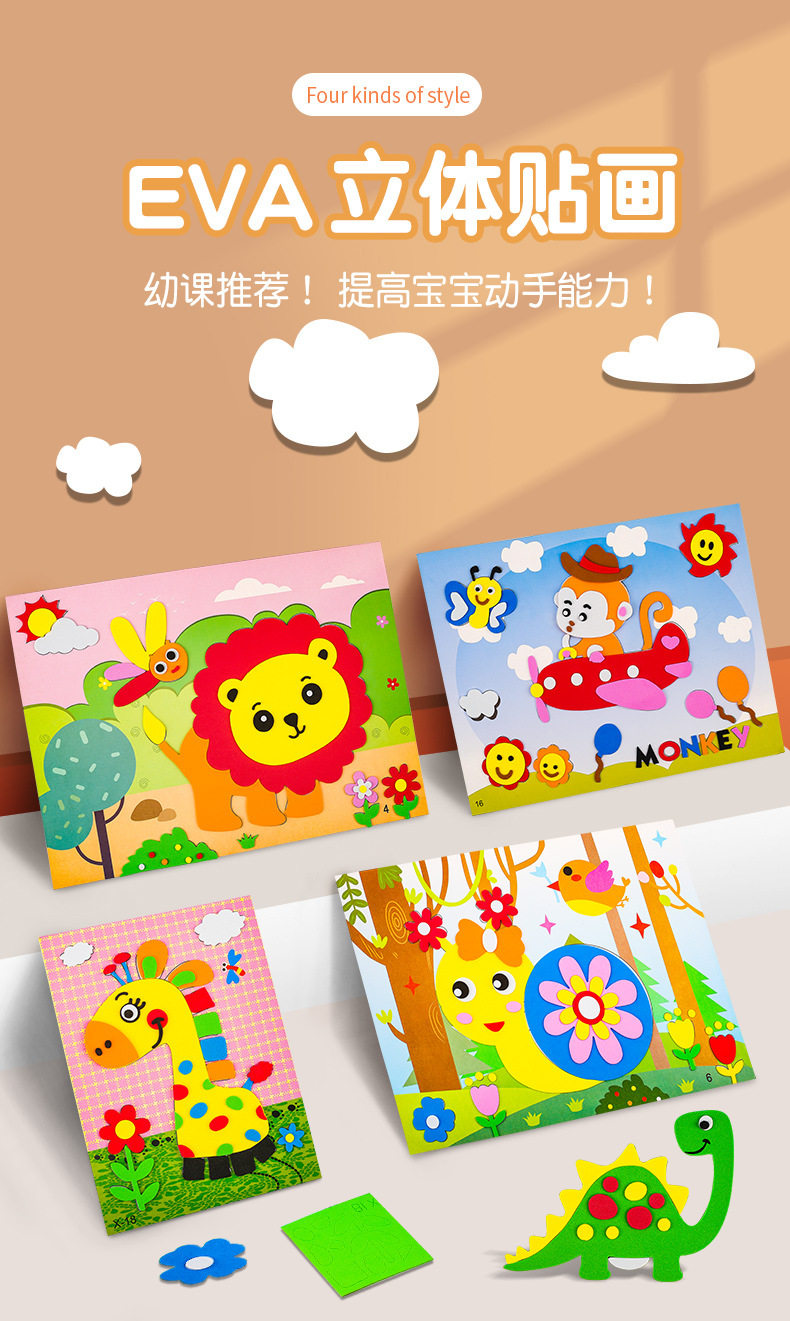 Eva, наклейки из EVA-пены, трехмерная детская головоломка, набор материалов, интеллектуальная игрушка для детского сада, DIY, в 3d формате, детская поделка своими руками