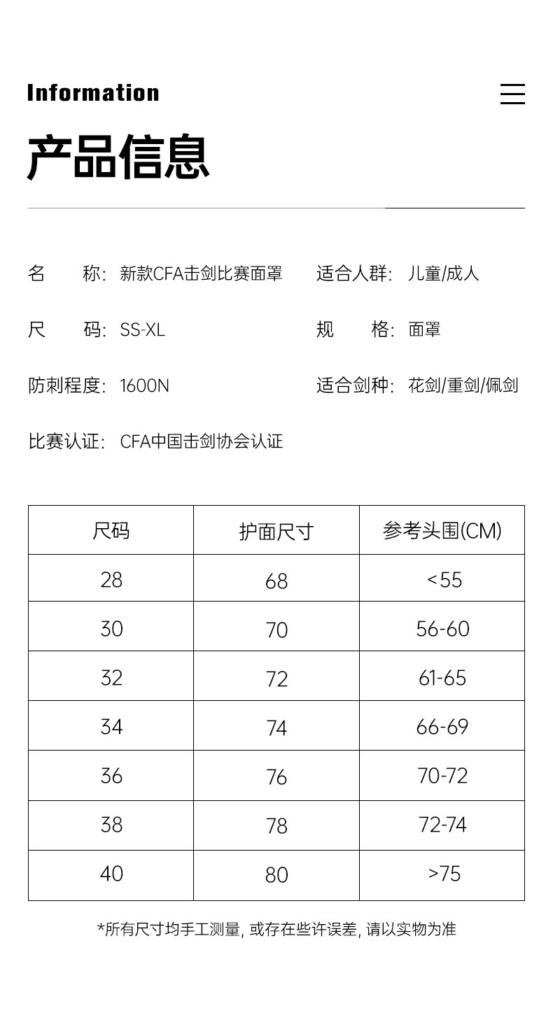 | Цвет: | [1600N花剑护面:SS码:68cm(<55cm)], [1600N花剑护面:SM码:70cm(56-60cm)], [1600N花剑护面:SL码:72cm(61-65cm)], [1600N花剑护面:S码:74cm(66-69cm)], [1600N花剑护面:M码:76cm(70-72cm)], [1600N花剑护面:L码:78cm(72-74cm)], [1600N花剑护面:XL码:80cm(>75cm)], [1600N重剑护面:SS码:68cm(<55cm)], [1600N重剑护面:SM码:70cm(56-60cm)], [1600N重剑护面:SL码:72cm(61-65cm)], [1600N重剑护面:S码:74cm(66-69cm)], [1600N重剑护面:M码:76cm(70-72cm)], [1600N重剑护面:L码:78cm(72-74cm)], [1600N重剑护面:XL码:80cm(>75cm)], [1600N佩剑护面:SS码:68cm(<55cm)], [1600N佩剑护面:SM码:70cm(56-60cm)], [1600N佩剑护面:SL码:72cm(61-65cm)], [1600N佩剑护面:S码:74cm(66-69cm)], [1600N佩剑护面:M码:76cm(70-72cm)], [1600N佩剑护面:L码:78cm(72-74cm)], [1600N佩剑护面:XL码:80cm(>75cm)] |