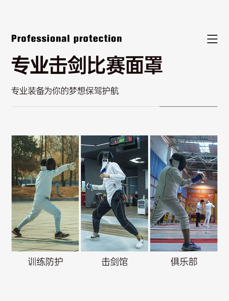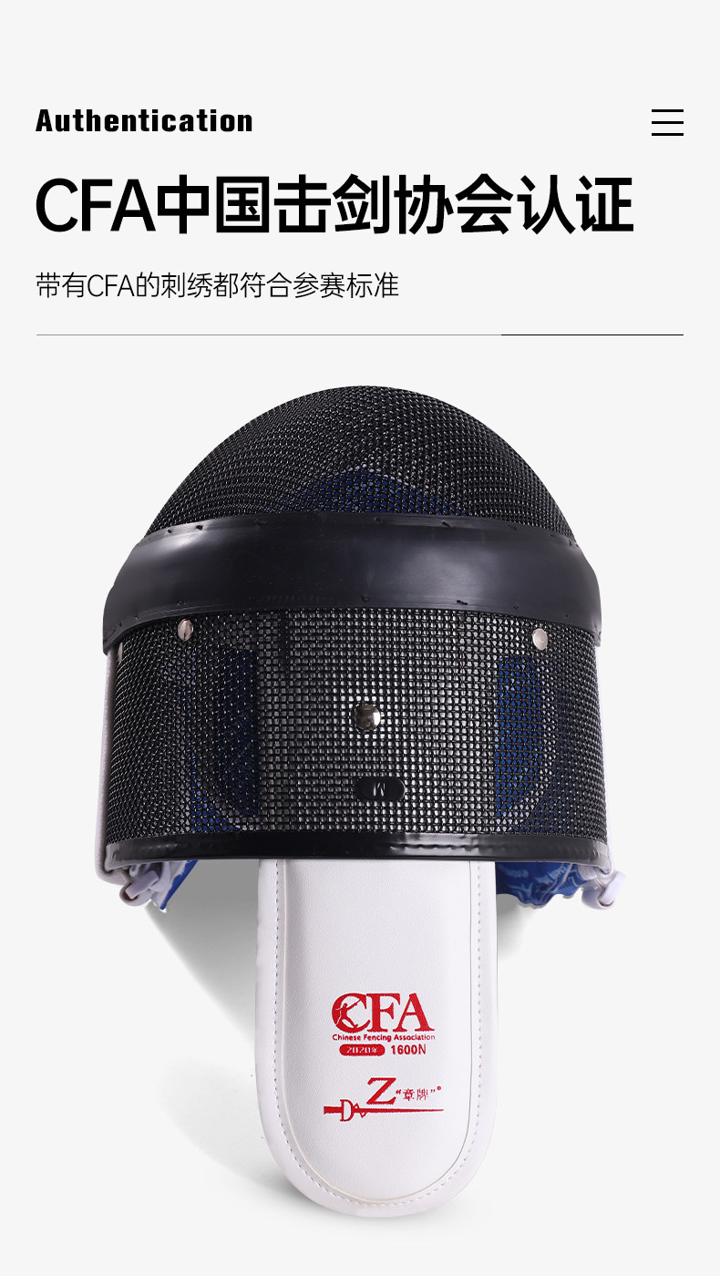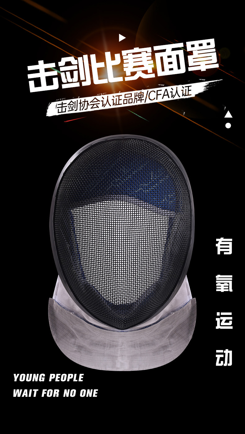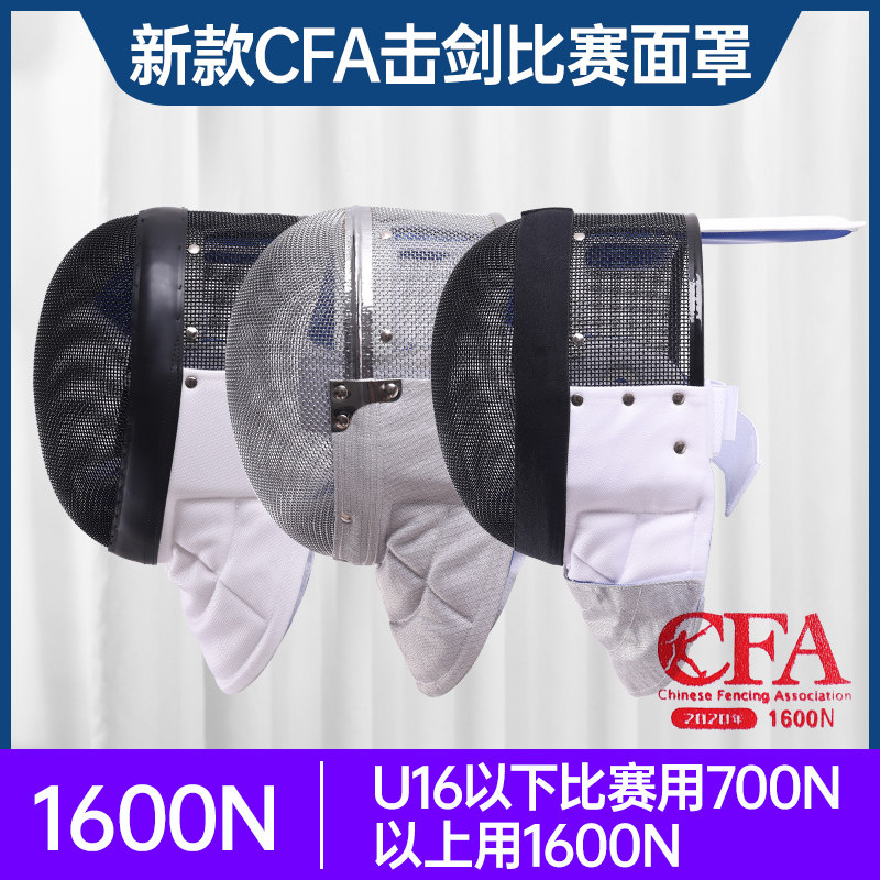 [新国标章牌击剑花剑重剑佩剑面罩护面CE认击剑头盔证器材1600N]